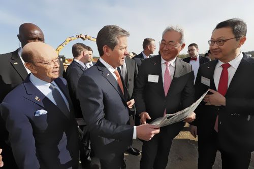 韓國SK Innovation出資17億美元在美國佐治亞州新建的轎車電池出產廠本周二正式破土動工。